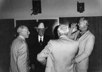 Op nevenstaande foto zien wij Teun Hettelaar (links) en Joep Garben (met hoed) van de Escape-groep Azewijn tijdens een reünie in zaal Berntsen te Azewijn in de jaren zeventig om de bevrijding te herdenken.