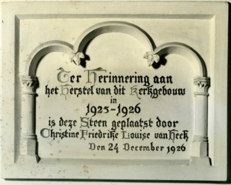 De restauratie was voltooid in december 1926. Van Heek had voor deze gelegenheid een gedenksteen ontworpen, die zijn dochter Christine Frederike Louise op vrijdag 24 december heeft onthuld. Op zondag 26 december volgde de inwijdingsdienst, die werd geleid door dominee Van der Leeuw, voormalig predikant van 's-Heerenberg. Tijdens deze dienst voerden meerdere personen het woord, waaronder dominee Zeydner van 's-Heerenberg en dominee Buisman van Zeddam.