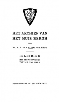 Het archief van het Huis Bergh is een inleiding op het archief van Huis Bergh door mr. A.P. van Schilfgaarde. Het voorwoord is van dr. Jan Herman van Heek. Het boek verscheen in 1932 bij de N.V. Drukkerij G.J. Thieme in Nijmegen.