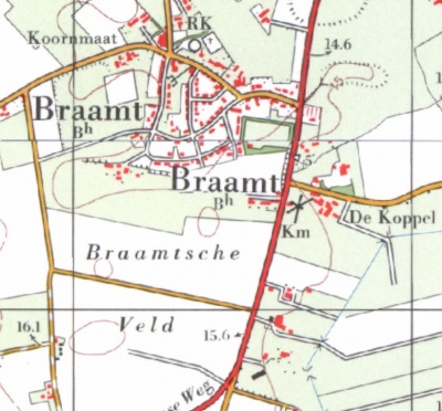Het Hof te Braamt op een topografische kaart uit 1966.