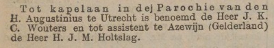 Hij bleef tot 10 augustus in Azewijn, waarna hij vertrok naar zijn eerste standplaats Wegdam (de oude naam van Hengevelde in Twente).