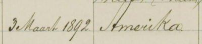 Begin maart 1892 ging hij in de haven van Antwerpen aan boord van het stoomschip Rhynland van de Belgisch-Amerikaanse rederij Red Star Line. Hij was in gezelschap van acht anderen, waaronder de al eerder genoemde Hendrik Ketelaar. De Rhynland kwam op 18 maart aan op Ellis Island, het aankomstcentrum in New York voor immigranten uit Europa.