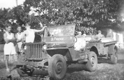 Jeeps waren de enige voertuigen die Boengboelang konden bereiken. Dit is de jeep van de aalmoezenier.