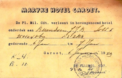 In januari 1949 overnachtte Joseph in Garoet. Een jaar eerder was hij daar ook, getuige een bioscoopkaartje van 4 januari 1948. |