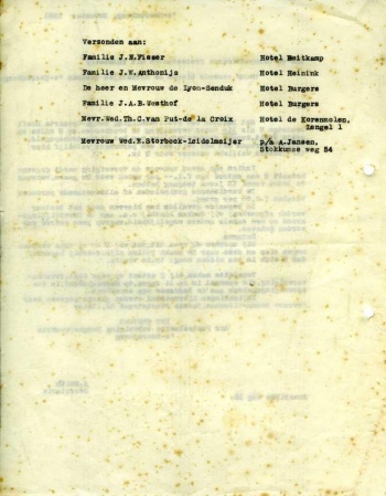 De namen van enkele protestantse repatrianten worden genoemd in de hiernaast afgebeelde brief uit het archief van Bergh Opwaerts. Zij waren ondergebracht in de hotels Burgers, Heitkamp en Heinink in 's-Heerenberg, in de Korenmolen in Lengel en op een particulier adres in Stokkum.
