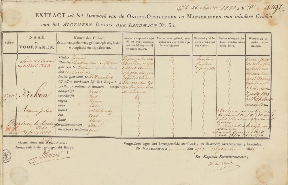 • Nationaal Archief, 2.10.50 Inventaris van het archief van het Ministerie van Koloniën: Stamboeken en pensioenregisters van Militairen KNIL in Oost- en West-Indië, 1815-1949 (1954), suppletiefolium 4597