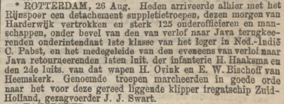 • 14 maart 1889: overgeplaatst naar het garnizoensbataljon van Amboina en Ternate