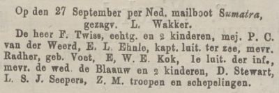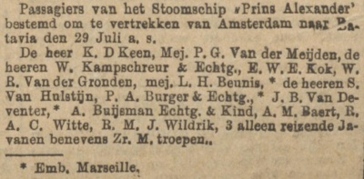 Hij reisde dit keer met het stoomschip Koningin Emma, dat voer op de route Amsterdam–Batavia. Ook nu was commandant van een detachement KNIL-militairen, dat op deze reis bestond uit zes onderofficieren en vijftig manschappen. De Koningin Emma kwam op 24 oktober aan in Batavia.