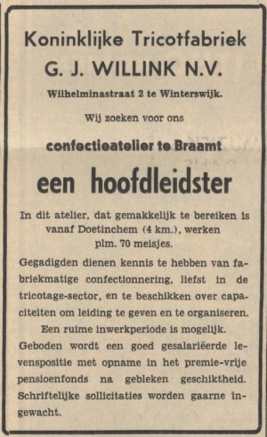 De Koninklijke Tricotfabriek G.J. Willink N.V. (KTW) in Winterswijk had van 1957 tot 1973 een filiaal in Braamt. Het bedrijf produceerde vooral dames- en herenondergoed en vrijetijdskleding.