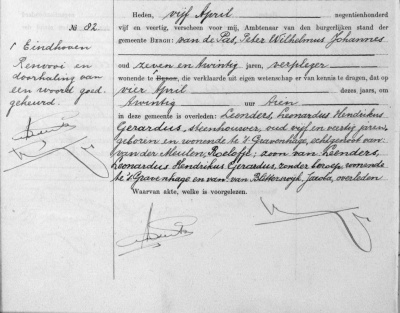 Zijn overlijden is op 5 april 1945 aangegeven in de gemeente Bergh en op 30 juli 1945 ingeschreven in de gemeente Den Haag. De aangifte in Bergh werd gedaan door Peter Wilhelmus Johannes van de Pas, een verpleger uit Eindhoven die in het noodziekenhuis werkte, waar hij Piet van de Pas werd genoemd. Hij bevond zich aan de verkeerde kant van de frontlinie, want Eindhoven was al op 18 september 1944 bevrijd. Van de Pas heeft in totaal twaalf overlijdens aangegeven; naast dat van Leenders ook dat van Boeljon, Buis, Van der Drift, Kamstra, Kleinleugenmors, Kurtz, Reijnders, Van Solingen, Strijaards, Udo en Vermaat.