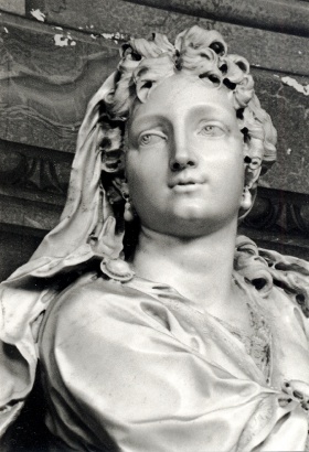 Het beeld van Leonora als deel van het monument in de kapel van het Hôtel Dieu in Cluny