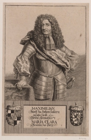 - Maximiliain, par la grace de Dieu Prince de Zollern, Conte de Sigmaringhen, Veringhen et Swabeeck, Seigneur de Haigerloch, Werstein, Chambellan du S. Empire