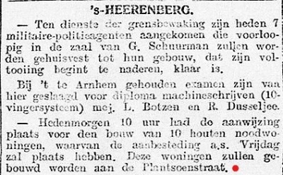 Rond 1920 zijn er tien houten noodwoningen (voorheen B9 tot B18) gebouwd op de locatie waar nu de woningen Plantsoensingel Zuid 8 t.m. 14 staan. Op de kiezerslijst (info Antoine Booms) van 1935 staan deze woningen al niet meer vermeld.