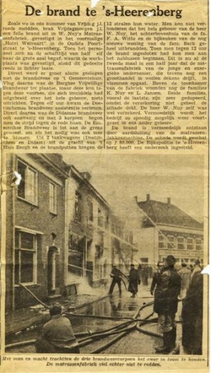 Vrijdag, maart 1954 brand Nuy aan de Oudste Poortstraat, naast het huis van de familie B. Sak. Archief Benny Schuurman Klik voor een vergroting. |