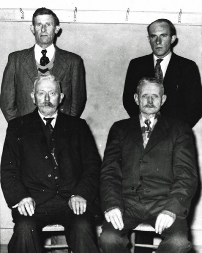 Bestuur 1954, staand v.l.n.r. E. Ketelaar, W. Alofs;