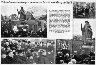 De onthulling van het monument de Goede Herder door kardinaal De Jong. Achter het monument staat een van de organisatoren, Willem Schuurman. |