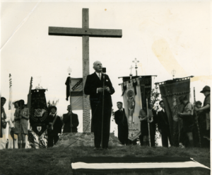 Het oorspronkelijke houten kruis is in 1960 vervangen. Voor het kruis zijn twee plaquettes geplaatst. Op de ene staan de namen van de slachtoffers en de plaatsnamen waar zij zijn omgekomen. Op de andere staat het gedicht In Memoriam, dat geschreven werd door 'Moeder van Bergen':