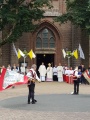 Aan het eind van de dienst heeft de kardinaal samen met genodigden de gedachteniskapel achter in de kerk gezegend. Bij het verlaten van de kerk bracht het Sint Antoniusgilde een vendelhulde, waarna men in optocht naar het monument De Goede Herder trok. De kardinaal en zijn concelebranten werden gevolgd door het Sint Antoniusgilde, Harmonie Crescendo, jeugdleden van FC Bergh in sporttenue (waarin MvR is opgegaan, de voetbalclub waarvan Marinus van Rooijen de naamgever was), kinderen die de gedichten gingen voorlezen, acolieten en misdienaars met het processiekruis, burgemeester Harry de Vries en wethouder Henk Groote, familieleden, de legatieraad van Gabriëlbestuur en verdere betrokkenen en kerkbezoekers.