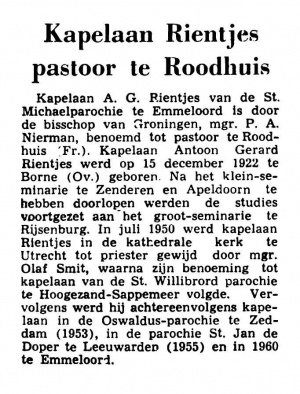 Antoon Gerard Rientjes werd op 15 december 1922 geboren in Borne.