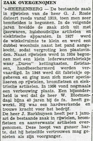 In 1956 was er een grondige verbouwing. De plaatselijke correspondent van een krant schreef: Op een kleine verhoging staan de rijwielen nu keurig geëtaleerd, aan de andere kant een rij bromfietsen, achterin vindt men nog een hoekje voor radiotoestellen, terwijl het plafond een keurcollectie biedt aan lampen. Velen kwamen het echtpaar Rozie van harte gelukwensen met deze nieuwe showroom. Hierbij merkten we op de directeuren van Gazelle en Empo, alsmede afgevaardigden van Philips en Blaupunkt.