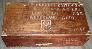 Op elk kist werden naam, legernummer en adres in Nederland geschilderd. Vaak kwamen rang en legeronderdeel er ook op te staan. Een onderdeels-embleem of de scheepsnaam werden ook wel toegevoegd. Alle persoonlijke eigendommen, inclusief eigen militaire uitrustingsstukken, mochten in de kist gepakt worden, maar van bepaalde artikelen moest op een speciaal formulier in drievoud het aantal of de hoeveelheid worden opgegeven, alsmede de waarde in Nederlands geld. Die artikelen waren aan een maximum gebonden, zoals rookwaren (1000 sigaretten óf 300 sigaren, en 5 kilo "gekorven" tabak), koffie en thee (elk 5 kilo), specerijen (1 kilo), conserven (10 blikken) en, gek genoeg, fietsbanden (twee binnen- en twee buitenbanden).