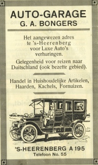 Gerhardus Albertus werd tevens garagehouder en had een benzinepomp voor de deur. Hij staat in het Adresboek 1935 vermeld als: Bongers, G.A., Marktstraat 195a, Telefoon 55.