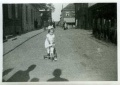 Afbeelding 43: Een gezicht op de Stokkumseweg. Op de hoek met de Zeddamseweg, waar nu (1984) fotohandel Van Gessel is, woonde toen Marinus Johannes Jasperse. Hij deed er zaken in radio's en auto's die hij tevens repareerde. Op de gevel van de winkel staat het bordje 's-Heerenbergsche Radio Centrale. Voor de zaak staat een benzinepomp van de Amerikaanse Petroleum Compagnie (APC - voorloper van Esso). Rechts is de kruidenierszaak van Theodorus Lambertus Johannes Egging nog juist zichtbaar, met daarachter een serie woningen die eigendom was van de familie Jansen. In het midden is kruidenierszaak Te Boekhorst. Opmerking redactie: Het pand van Jasperse en later Van Gessel (huisnr. 1) is voor 1985 afgebroken om plaats te maken voor een nieuwbouwcomplex met 12 woningen (huisnrs. 1 t/m 3e).