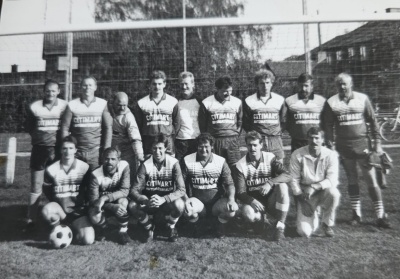 1e elftal 97/98: staand vlnr: Joop Giesen, Bart Kemperman, Jan-Willem Arendsen, Erik Evers, Martijn Lammers, Mike Jolink, Lucien Buiting, Dennis Arts, Tonny Abbenhuis, Frans Polman, Jacques van Werken, Dhr. en Mvr. Rozeboom. Zittend vlnr: Johnny ten Eykelder, Alex Knippers, Wilco van Koot, Marcel Lenting, Rik Masselink, Pascal Litjes, Dennis Jolink en René Evers.