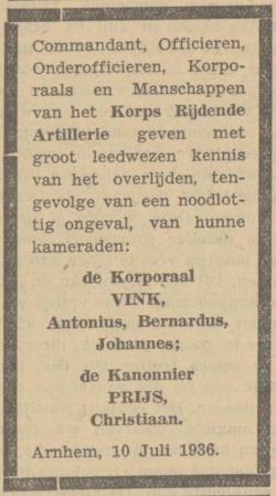 - Arnhemsche Courant van 10 en 11 juli 1936