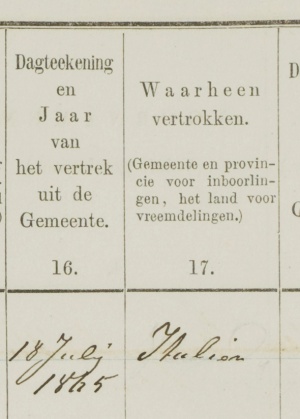 Te Welschers uitschrijving naar Italië in het bevolkingsregister van Bergh. Mogelijk was hij in de voorgaande herfst al bij Rome overleden.