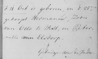 De inschrijving van Herman te Wests doop op 25 oktober 1793 in het protestantse doopregister van 's-Heerenberg.