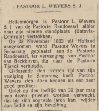 Op 28 juli 1933 vertrok hij met het passagiersschip Kota Nopan van Rotterdam naar Nederlands-Indië, waar hij eind augustus aankwam. Hij was er benoemd tot pastoor van de Heilige Rozenkranskerk in Randoesari, een stadsdeel van Semarang op Midden-Java.