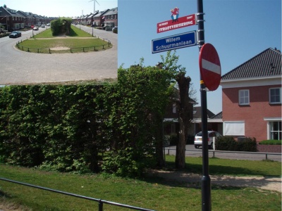 De Willem Schuurmanlaan met in het midden het Bidstraatje