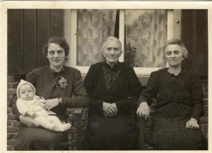 Vier generaties Winters: Wilhelmien Bergsma, moeder Lies Bergsma-Winters, overgrootmoeder Dina Garben-Dieker en grootmoeder Mina Winters-Garben