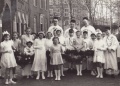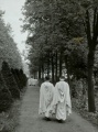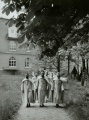 Witte Paters bij de Theresia Stichting met de Bruidjes. Rechts op de foto Mieneke Schuurman, zij maakte zich verdienstelijk voor de kerk.